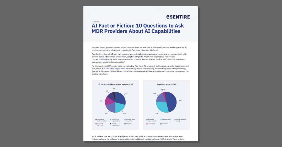 This eBook, “AI Fact or Fiction: 10 Questions to Ask MDR Providers About AI Capabilities,” walks through questions that help you differentiate between true, production-ready AI and marketing claims.
